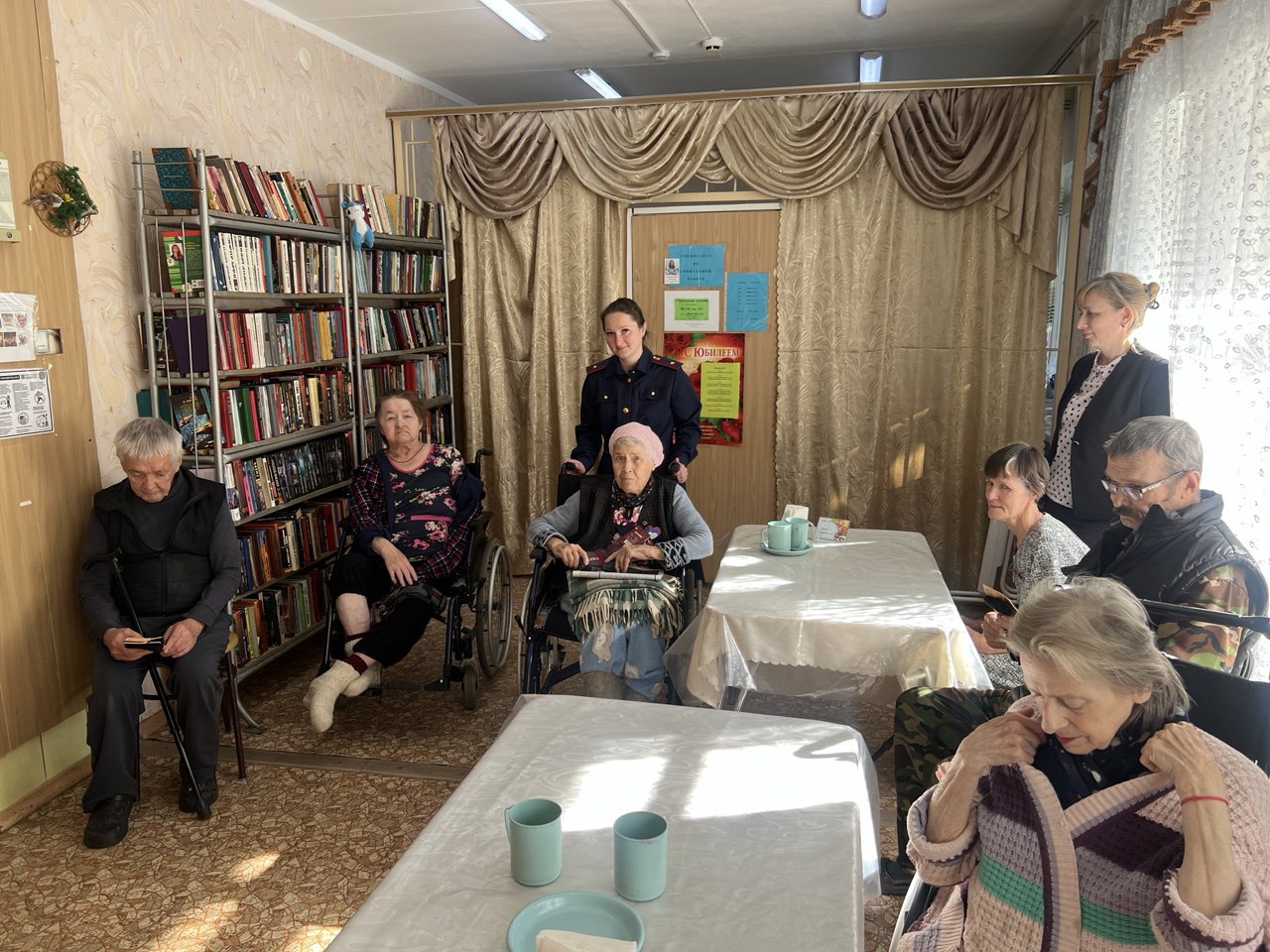В рамках празднования сотрудники регионального управления посетили Государственное бюджетное учреждение Республики Марий Эл «Кокшайский дом-интернат для престарелых и инвалидов». Офицеры побеседовали с постояльцами учреждения, выразили им слова благодарности за их жизненный опыт и мудрость, а также вручили памятные подарки.