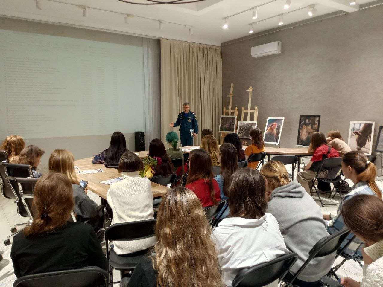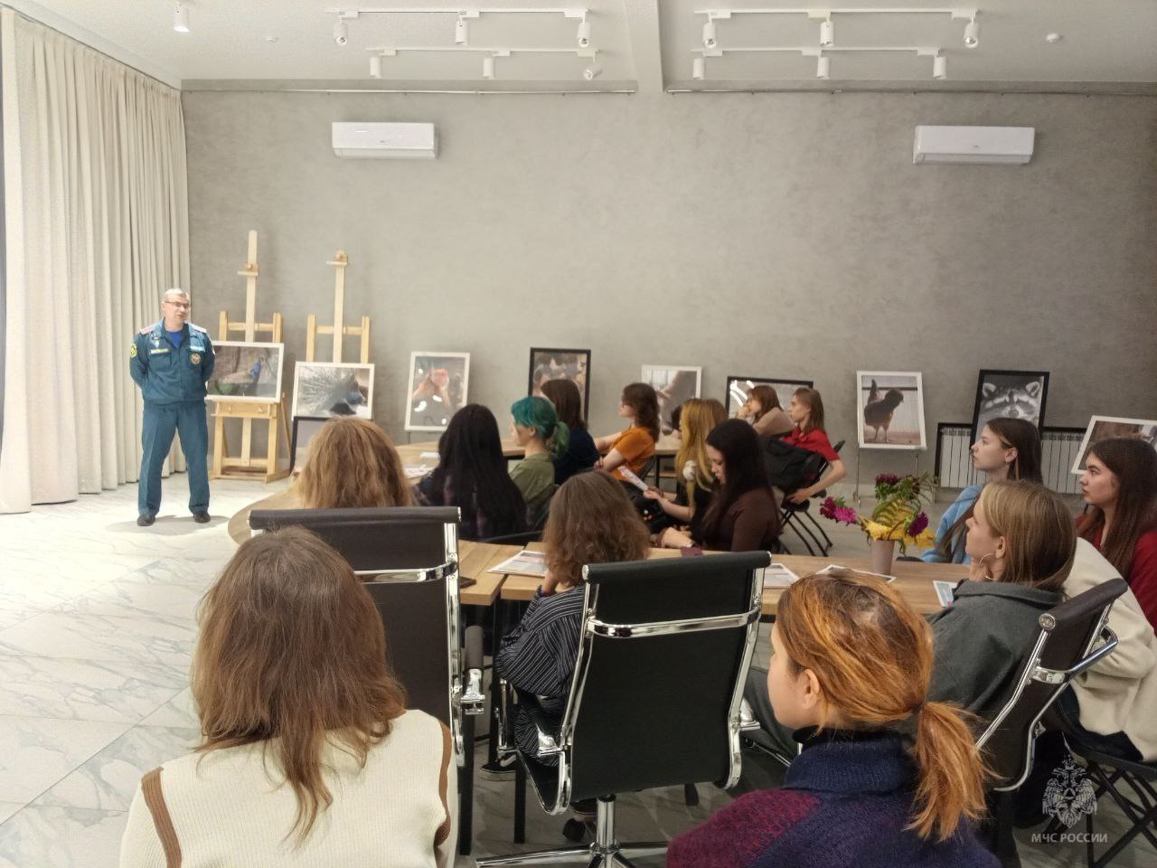 Один из уроков был проведен в йошкар-олинском художественном училище. В гости к ребятам пришел заместитель начальника гражданской обороны и подготовки населения Главного управления МЧС России по Республике Марий Эл Евгений Тимаков.