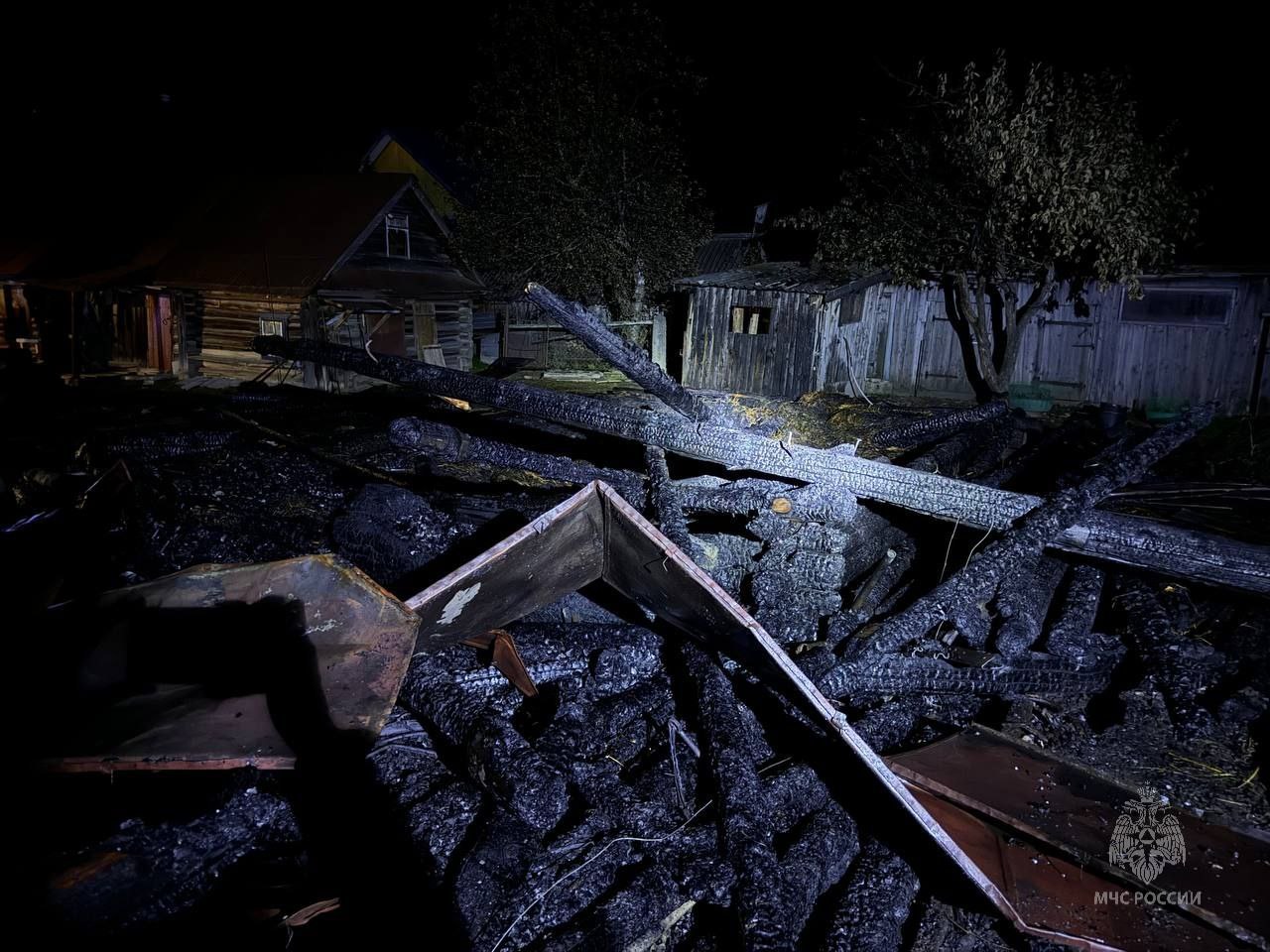 Сын владельцев дома проснулся от света и услышал характерный треск. Окна его комнаты выходили на место пожара, что позволило ему оперативно оценить ситуацию. Он незамедлительно разбудил своих родителей. Выбежав на улицу, они увидели, что хлев охвачен пламенем. До приезда пожарных расчетов владельцы дома предприняли попытки потушить возгорание с использованием подручных средств, однако их усилия не привели к успеху.