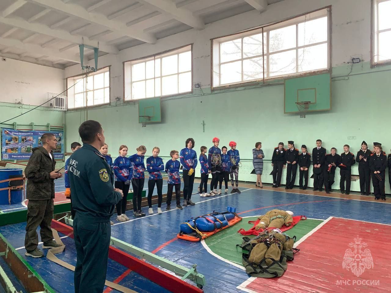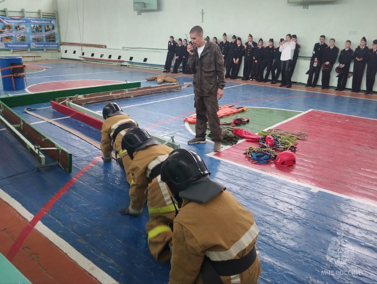 Во второй части мероприятия в актовом зале школы для новых кадетов и их родителей была организована практико-ориентированная программа по основам безопасности и спасательного дела. Приёмы спасения человека продемонстрировали участники клуба воинских традиций «Защитник».