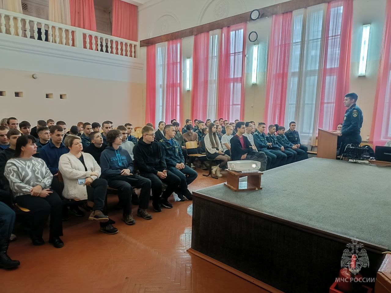 Студентам были представлены направления подготовки курсантов, требования, предъявляемые к кандидатам, порядок проведения абитуриентских сборов, а также социальные гарантии и льготы, предоставляемые сотрудникам Федеральной противопожарной службы Государственной противопожарной службы.