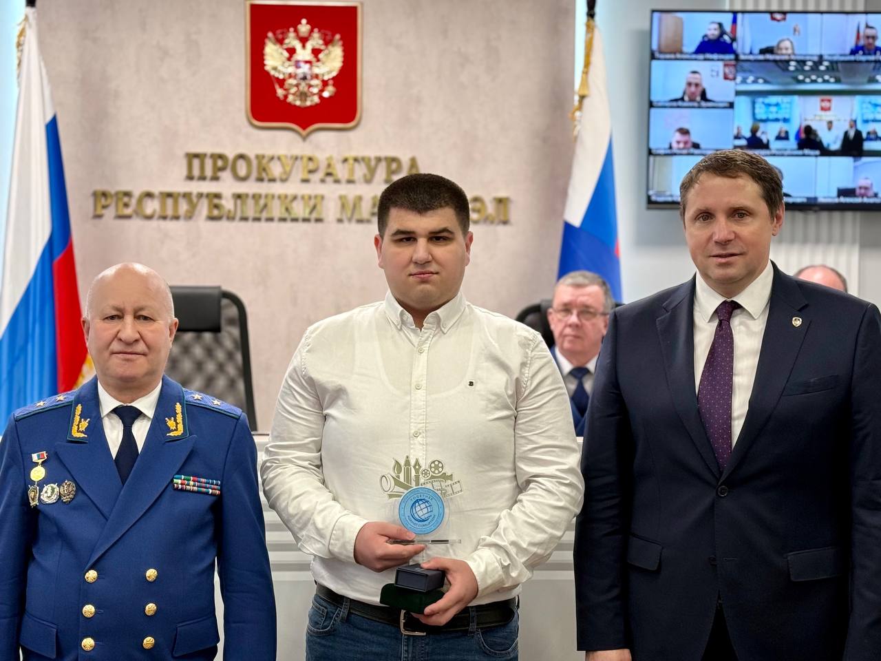 По поручению Генерального прокурора Российской Федерации Александра Гуцана прокурор Марий Эл Илдус Нафиков вручил студенту Марийского государственного университета медаль с символикой Международного молодежного конкурса социальной антикоррупционной рекламы «Вместе против коррупции!»