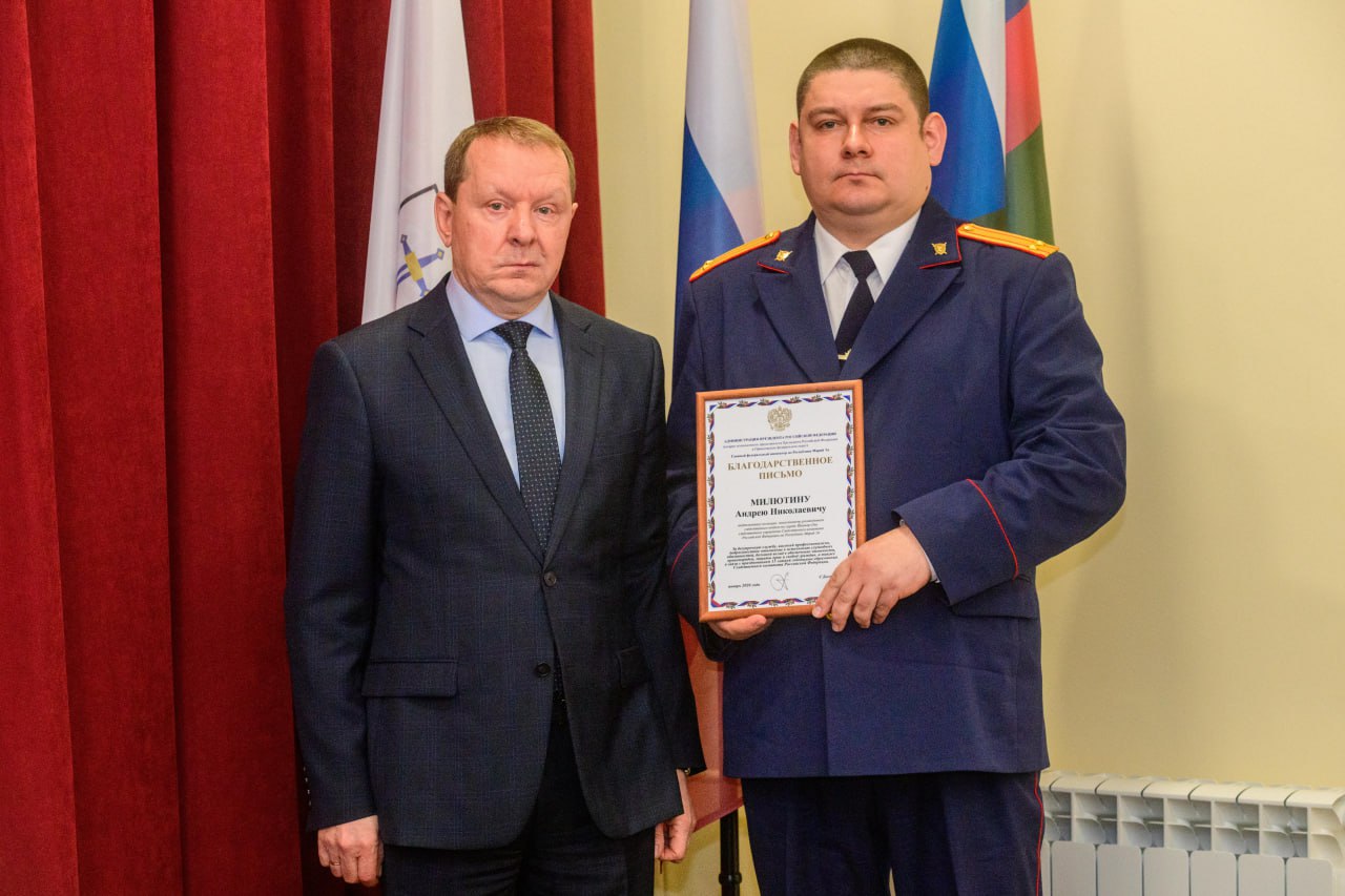 3Благодарности Главы Республики Марий Эл объявлены руководителю Советского межрайонного следственного отдела Алексею Абрамову и старшему следователю второго отдела по расследованию особо важных дел Никите Решетову за высокий профессионализм и добросовестное исполнение служебных обязанностей.