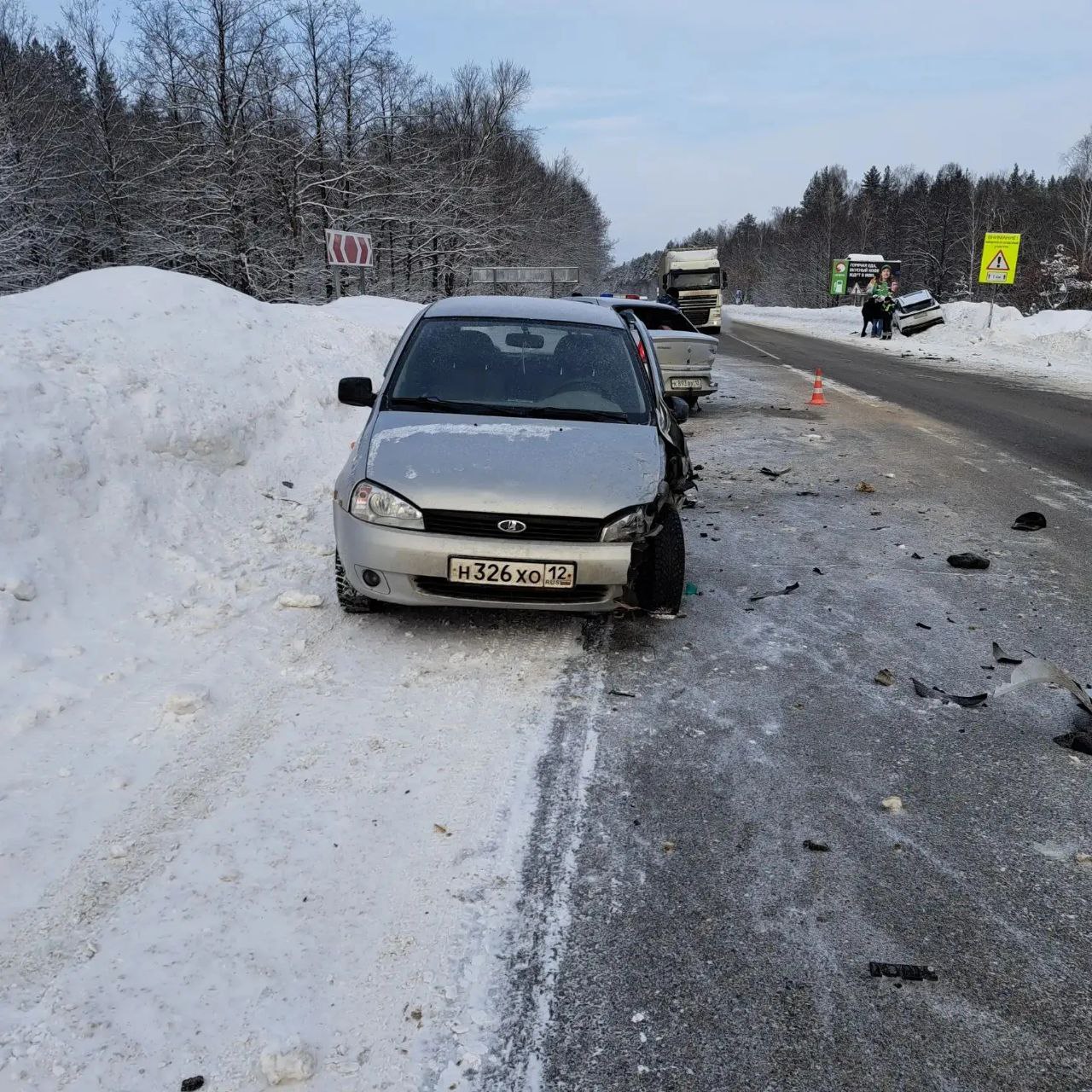 Около 8 часов утра на 67 км автодороги «Йошкар-Ола-Зеленодольск» произошло ДТП с участием трех автомашин Renault Logan, Lada Kalina и Omoda. В результате ДТП водитель автомашины Lada Kalina получил телесные повреждения.
