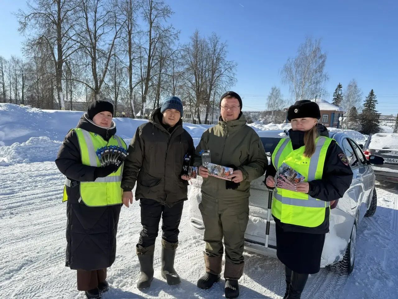 Аналогичная акция прошла и в поселке Сернур, где автоинспекторы вышли на улицы поселка совместно с руководителем отдела молодежной политики Сернурского округа Мариной Кораблевой.