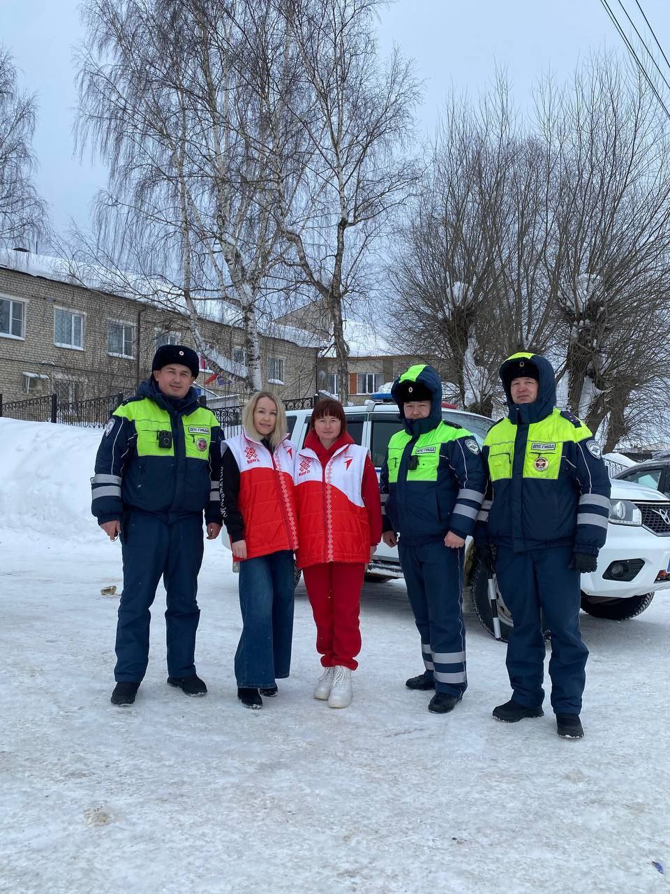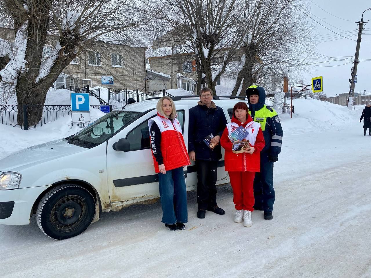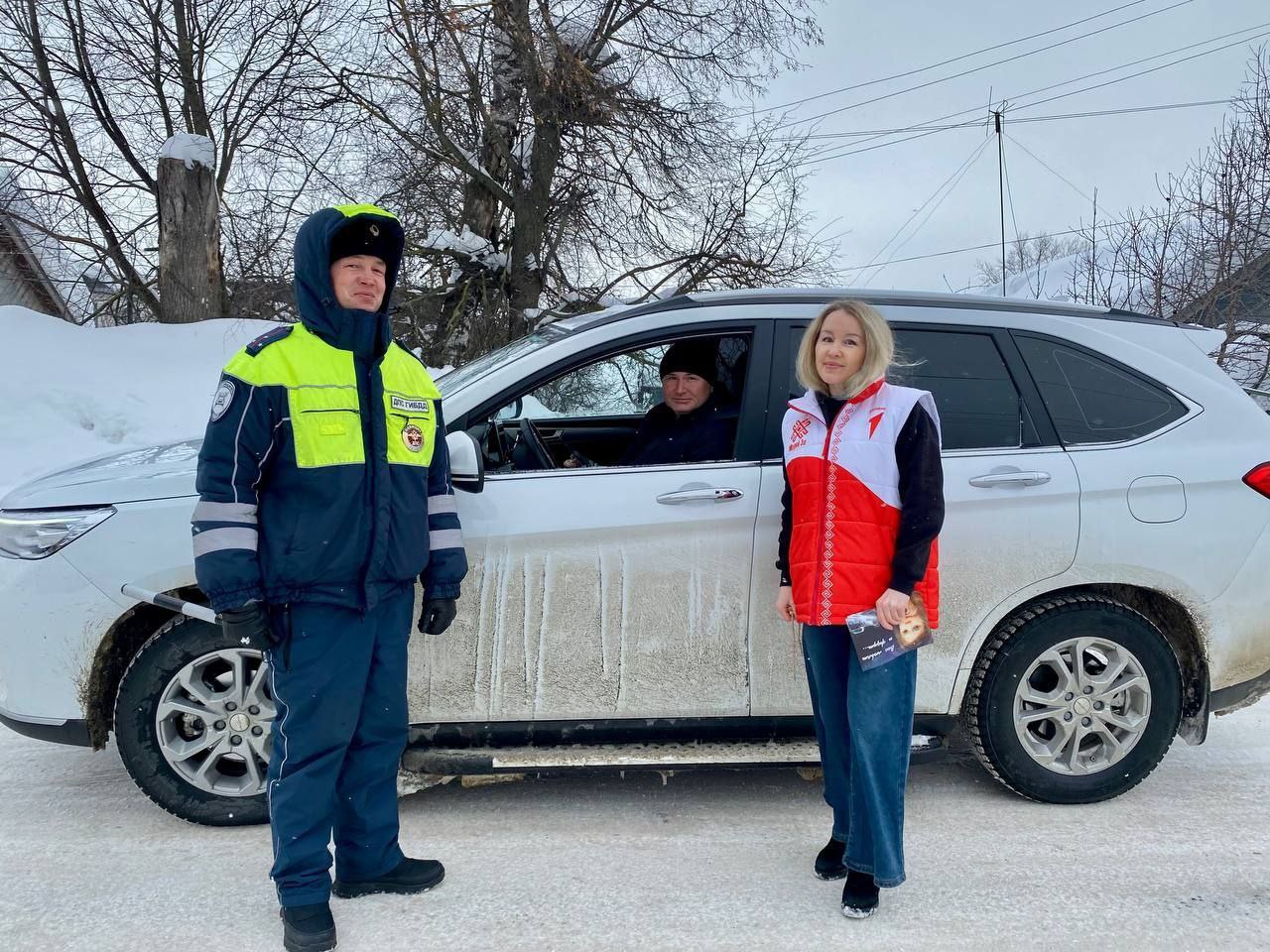 В п. Морки сотрудники автоинспекторы и активисты Движения первых поздравили автомобилистов с Днём защитника Отечества.