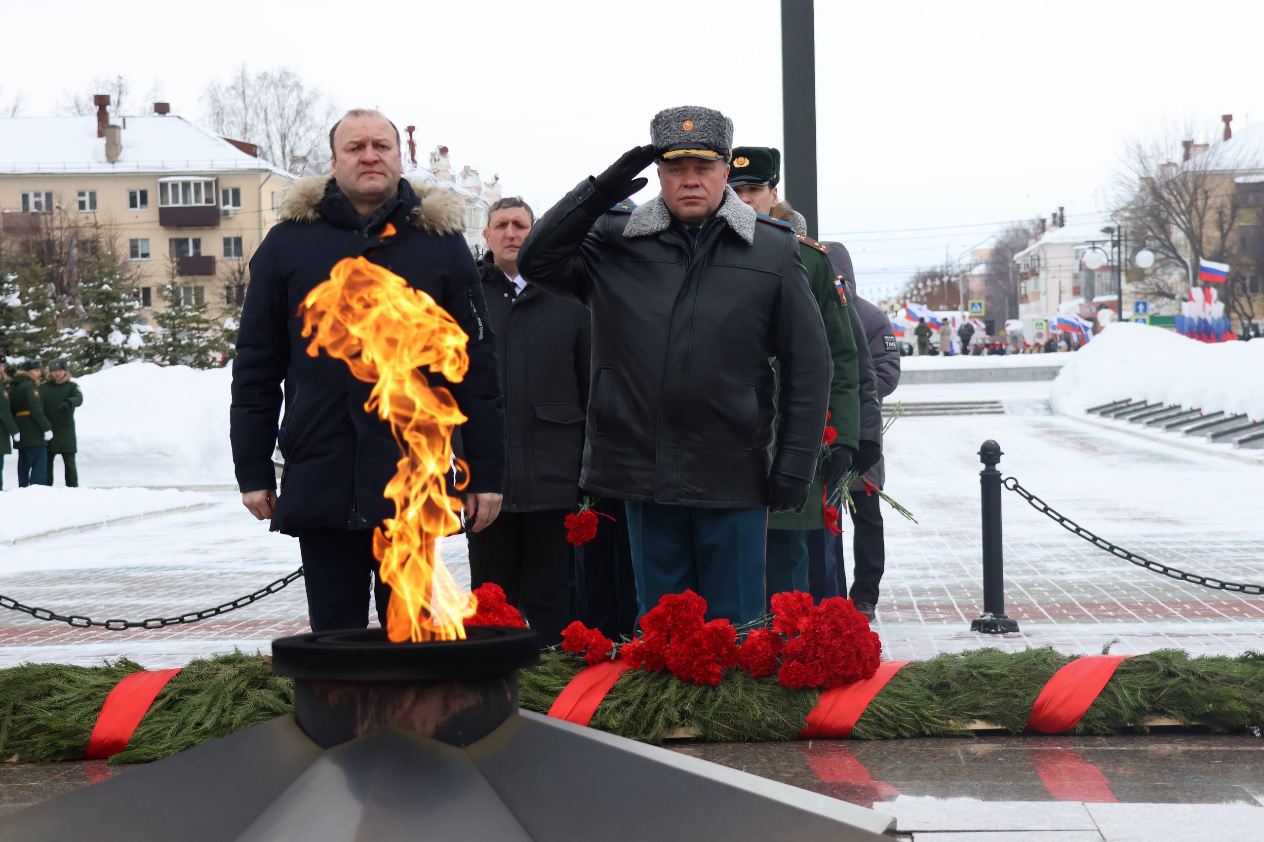 23 февраля 2026 года, в День защитника Отечества, в столице Республики Марий Эл состоялась торжественная церемония возложения цветов к Мемориалу Воинской Славы и Вечному огню.