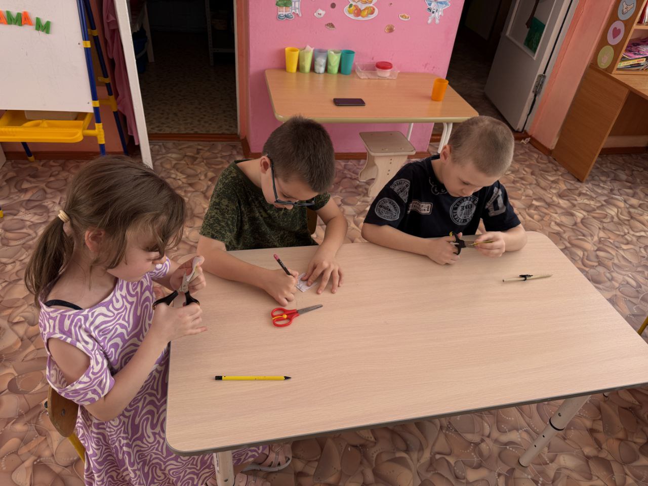 После беседы ребята сами вырезали световозвращающие наклейки из специальной ленты.