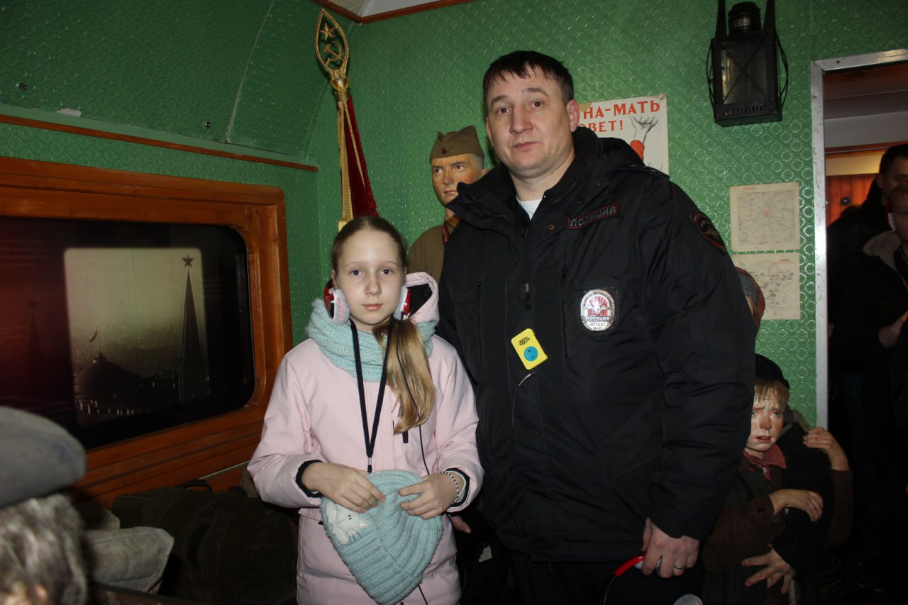 В рамках патриотического воспитания сотрудники органов внутренних дел и ветераны вместе с детьми посетили экскурсию, организованную в передвижной выставке «Поезд Победы».