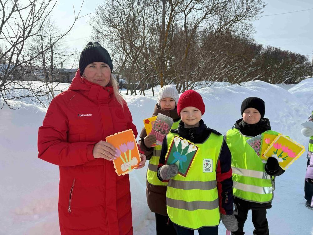 В преддверии Международного женского дня юные инспекторы движения Сернурской средней школы №2 совместно с сотрудниками отделения Госавтоинспекции МО МВД России «Сернурский» провели акцию «8 Марта - в каждый дом», организовали поздравление женщин с прекрасным весенним праздником. Ребята дарили яркие открытки, которые подготовили сами, и пожелали участникам дорожного движения безопасных дорог, быть внимательными и соблюдать правила дорожного движения.