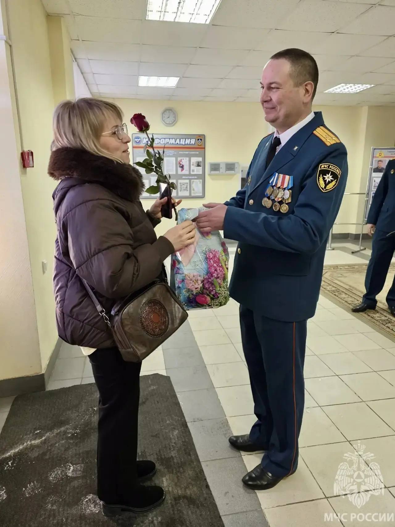 С самого утра в фойе Главного управления царила праздничная атмосфера: мужчины встречали прекрасных дам с букетами весенних цветов и памятными подарками, даря тёплые улыбки и искренние пожелания счастья.