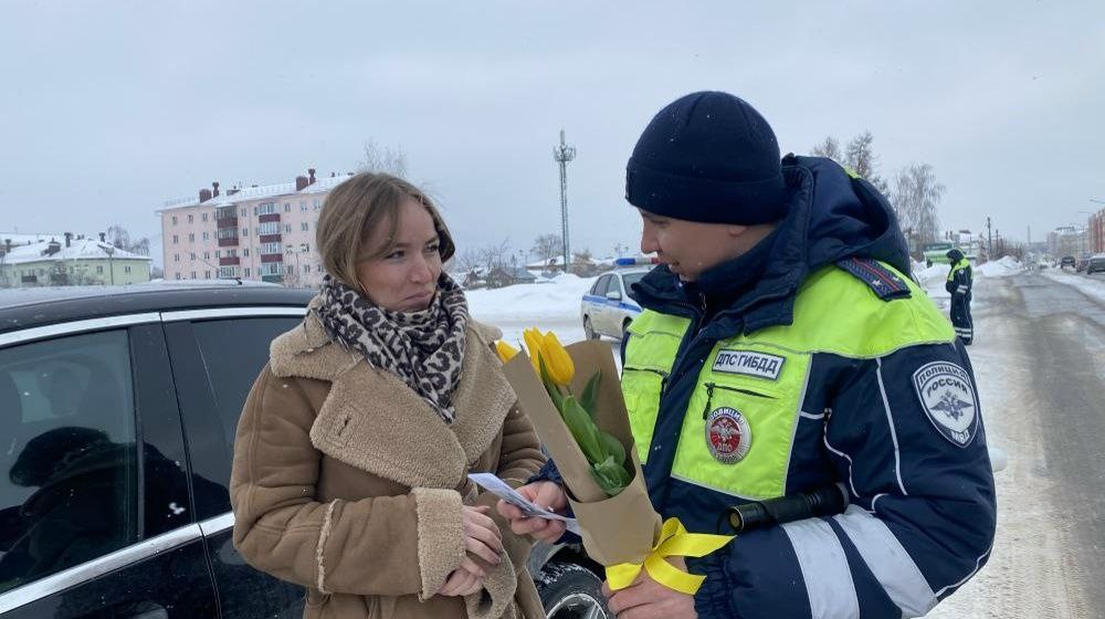 На одной из центральных улиц начальник отделения Госавтоинспекции МО МВД России "Звениговский" Александр Чугунов и его сотрудники останавливали автомашины, за рулем которых находились прекрасные дамы, и вместо проверки документов дарили тюльпаны и поздравительные буклеты. Автоледи при остановке сначала смущались, но получив цветы и подарки, улыбались, благодарили инспекторов и весело делились впечатлениями со своими пассажирами.