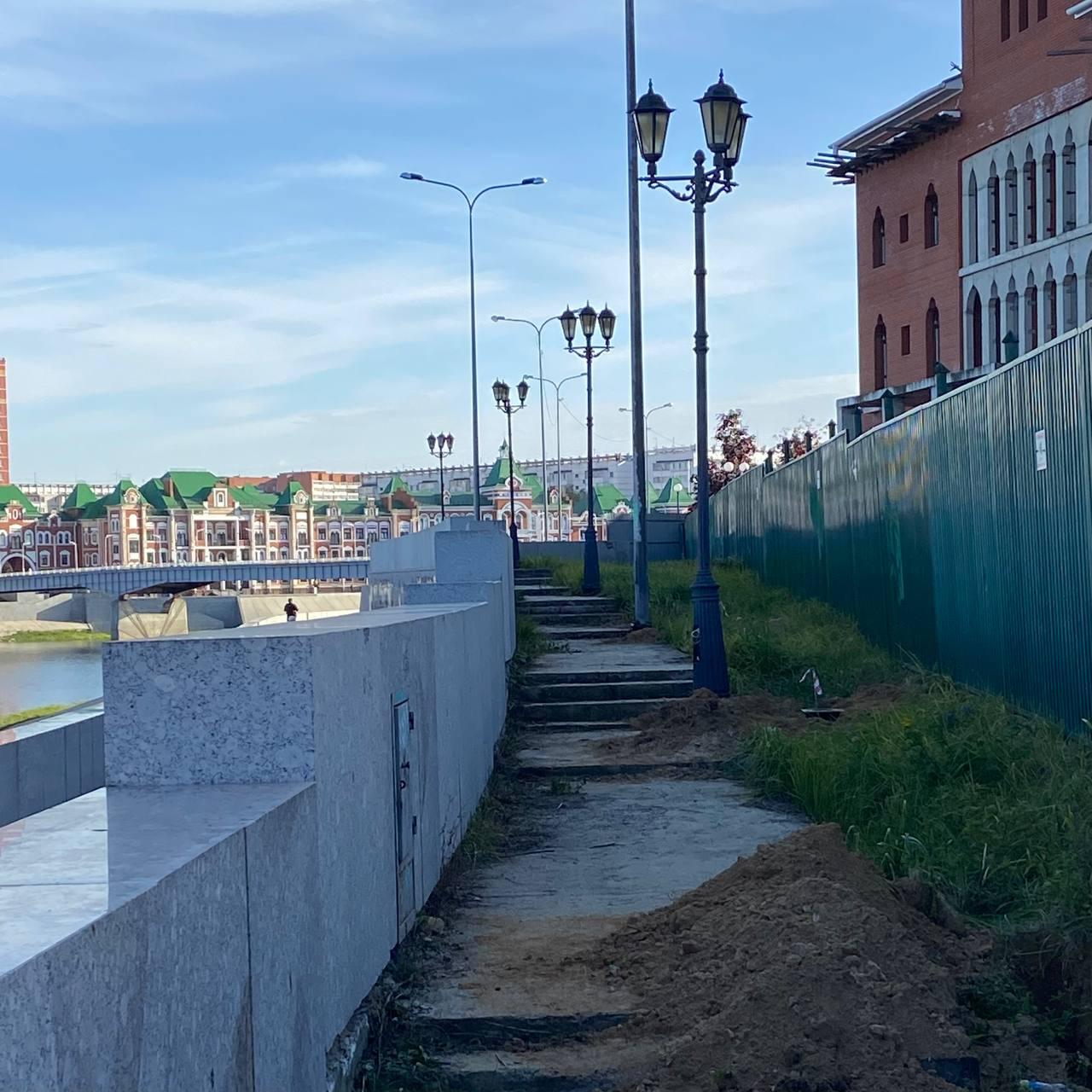 В Йошкар-Оле на Воскресенской набережной в районе Итальянского парка начались работы по обустройству пандуса и безопасных путей движения.