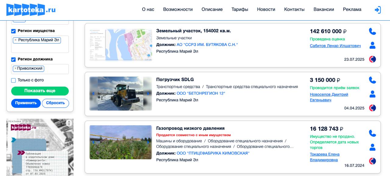 В Марий Эл заработал специализированный маркетплейс, на котором можно купить имущество должников.