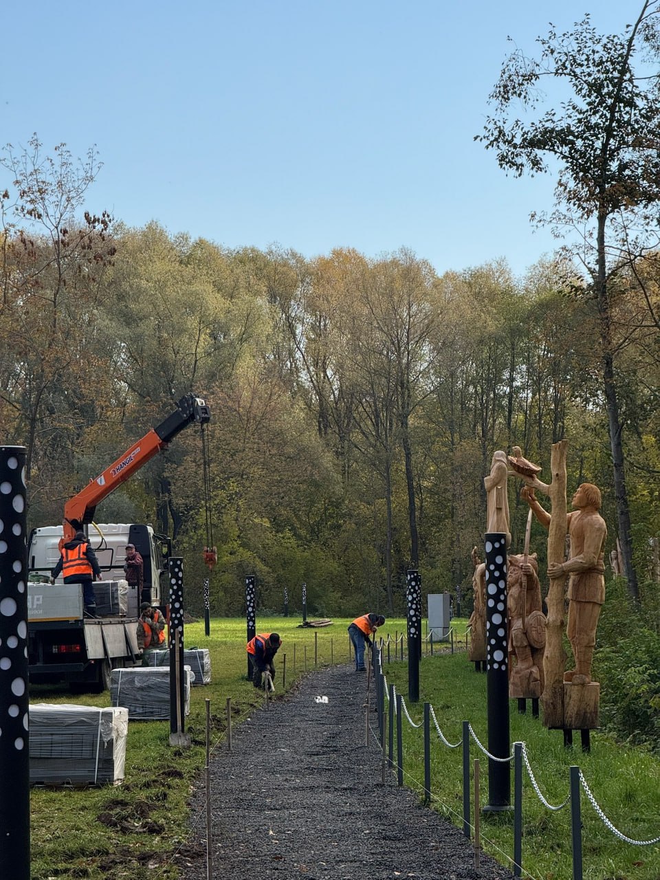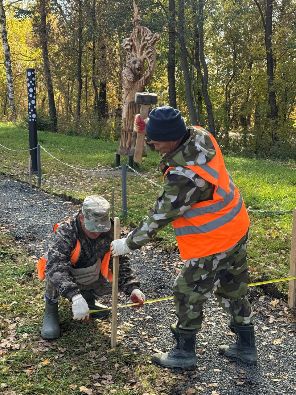 Новая общественная зона, открытая в 2023 году, известна своими уникальными деревянными скульптурами, созданными на фестивале «Легенды народа мари». В настоящее время вдоль аллеи этих произведений искусства обустраивается удобная пешеходная дорожка. Гравийное покрытие, показавшее свою непрактичность при интенсивной эксплуатации, будет заменено на долговечную и комфортную брусчатку.