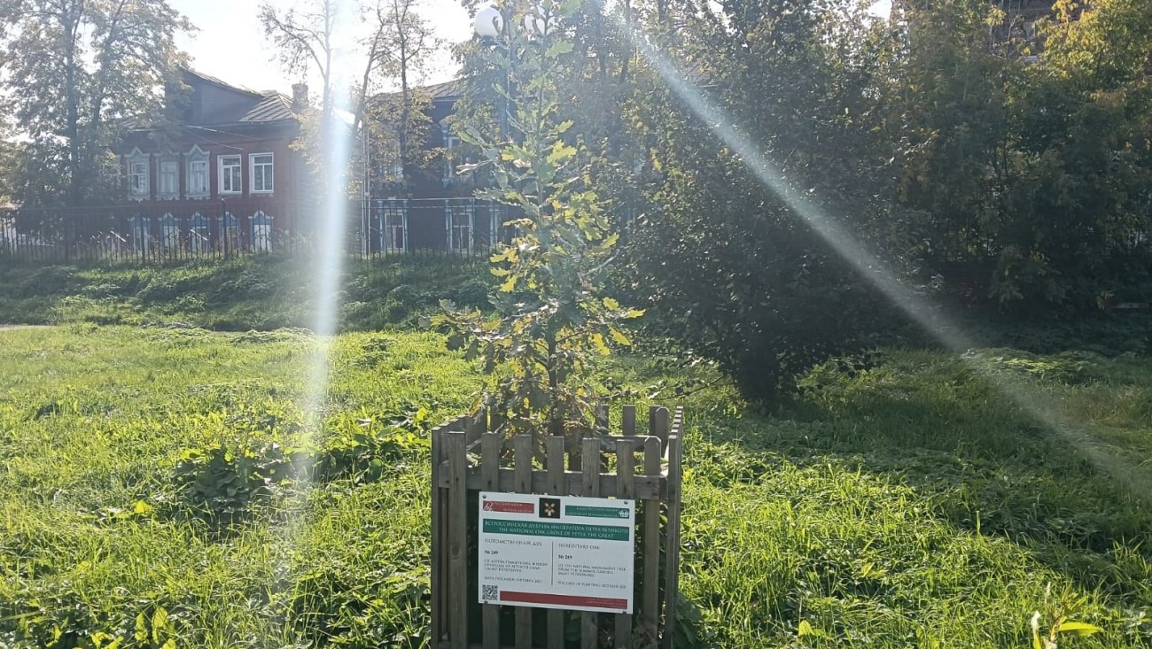 В Козьмодемьянском парке всё больше набирает силу дуб Петра I. Саженец был посажен в 2021 году.