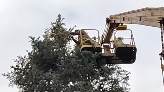 На помощь в таких случаях приходит высотная техника. Кран поднимает сборщиков к самым макушкам деревьев. А уж там на высоте остаётся только стряхнуть налившиеся семенами шишки пихты в вёдра, которые рассыпаются в руках сами.