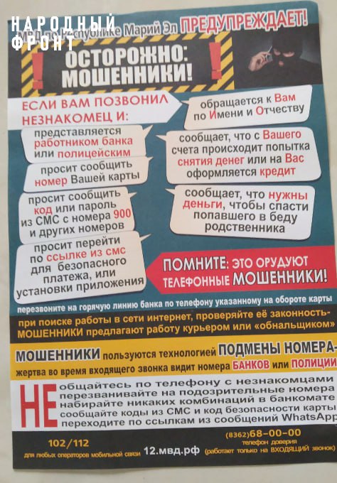 Но МВД и Народный фронт объединили усилия! Мы активно информируем граждан, как распознать обман и не попасть в ловушку злоумышленников.