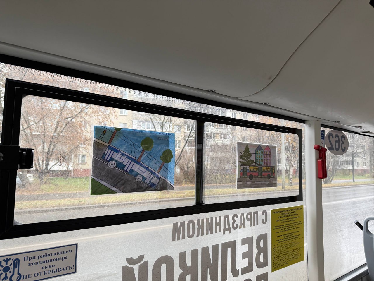В честь 55-летия Йошкар-Олинского троллейбусного движения прошел конкурс рисунков, в котором приняли участие ученики начальной школы Гимназии №26 им. А. Мальро. Самые яркие и оригинальные работы юных талантов теперь украшают салон.