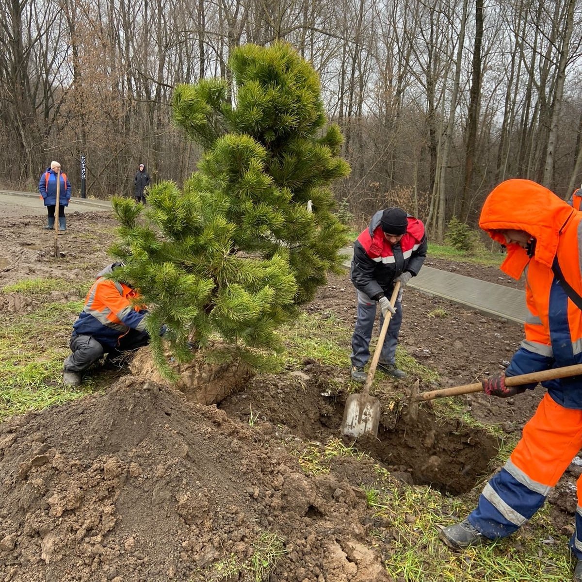 Вчера в Марий парке команда озеленителей АО «Город» высадила новых хвойных жителей — горные сосны и ели европейские!