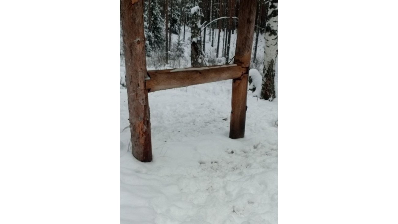 Судя по всему, в лесной столовой им понравилось, поскольку специалисты парка запечатлели и следы отдыха лосей, по которым видно, что они здесь устроили ещё и лежбище.
