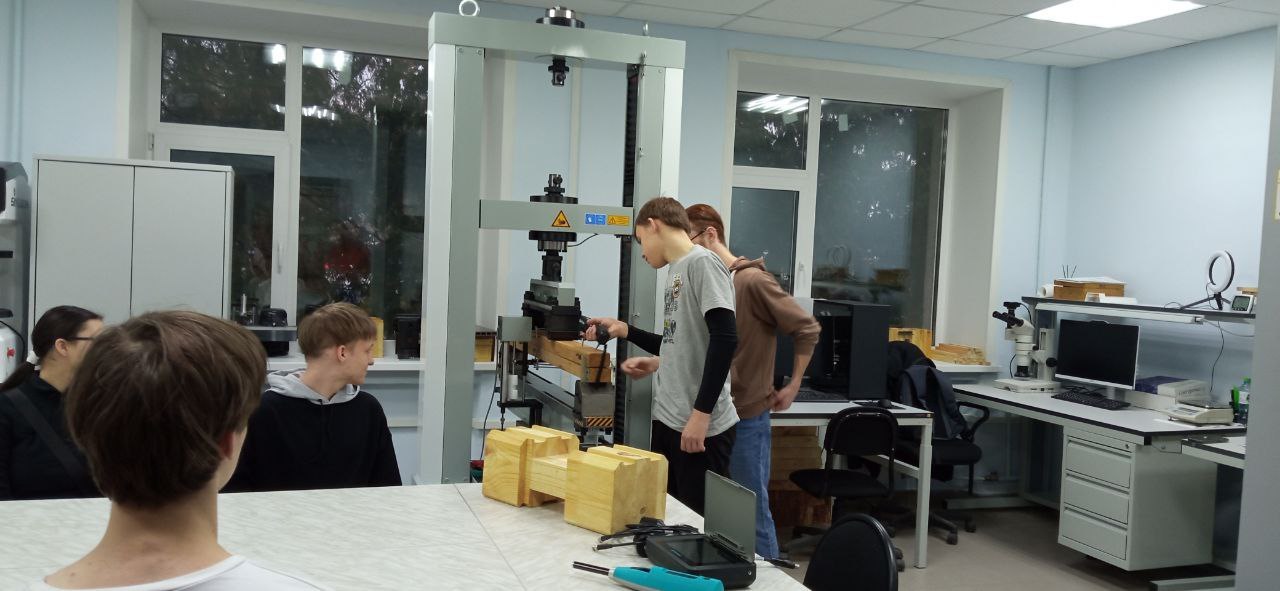 В Волгатехе школьники проводили испытания прочности строительных материалов, осваивая тепловизор и выполняя геодезические замеры.