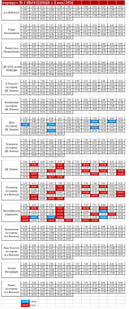 С 1 января 2026 года в Йошкар-Оле изменится расписание движения четырех троллейбусных маршрутов по выходным дням.