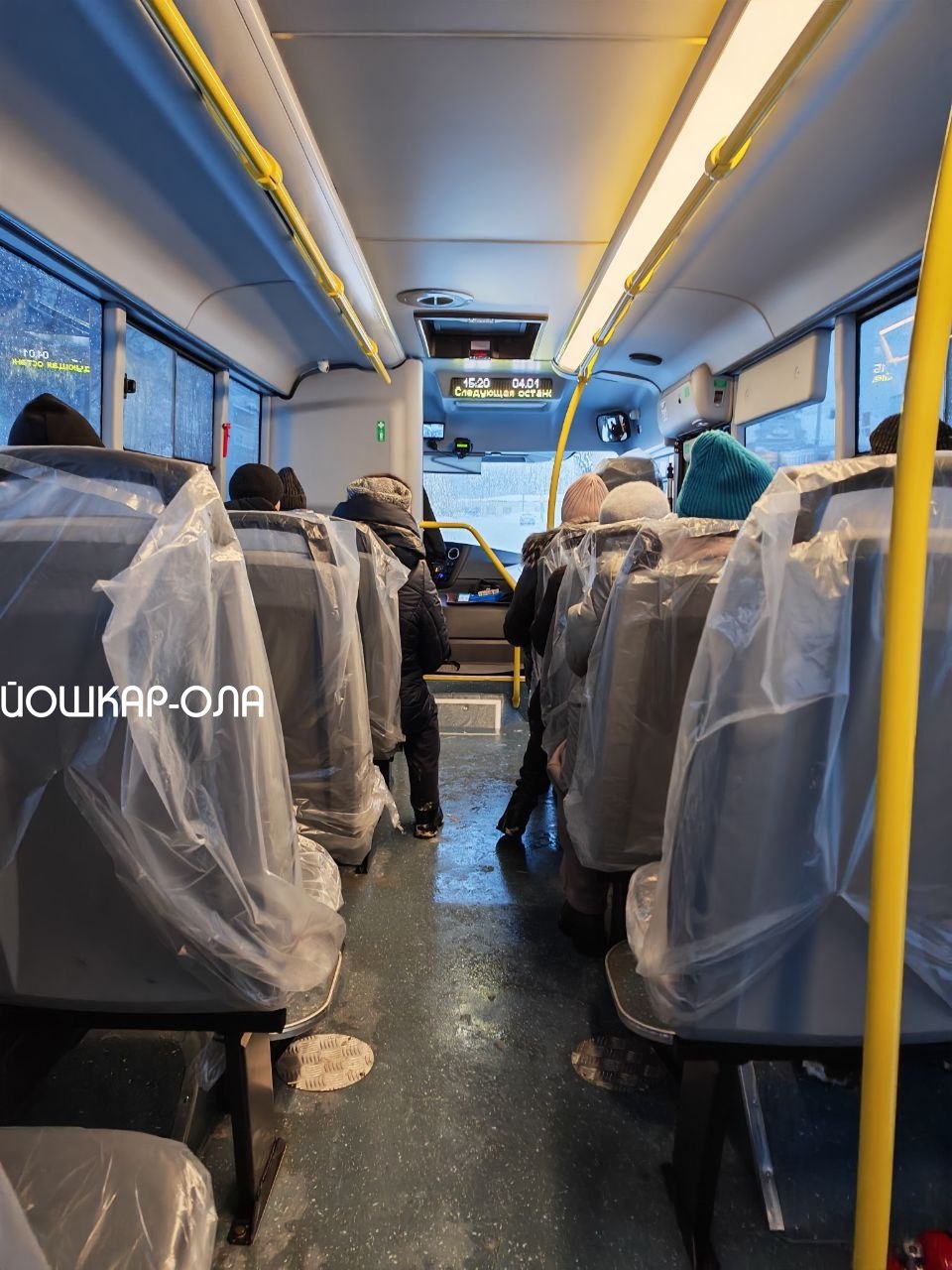 В одной из таких маршруток с сидений еще не сняли защитные чехлы, наверное, как оберег от вандализма.