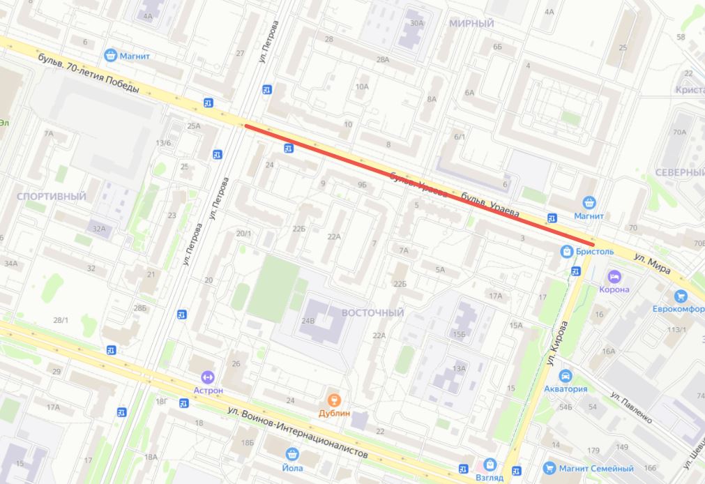 по бульвару Ураева от улицы Петрова до Кирова – с 12 по 13 января;