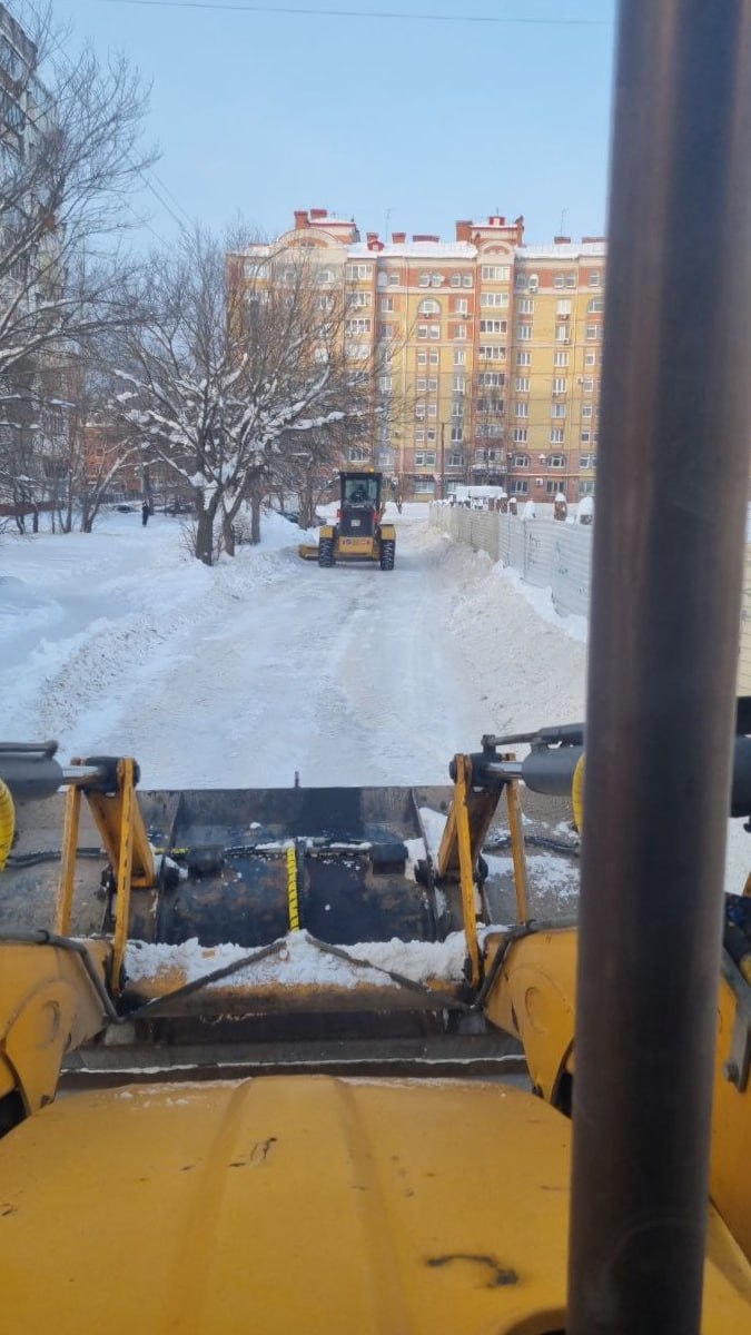 На расчистке межквартальных проездов работает около 10 единиц техники. Отрабатываются как запланированные маршруты, так и выполняются точечные заявки.