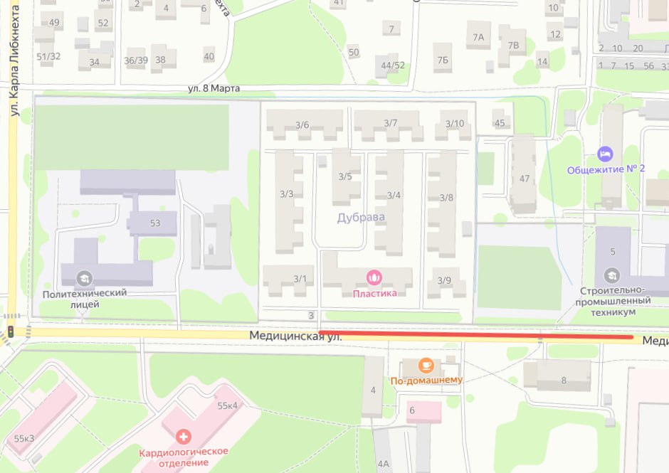 В связи с устранением аварии на водопроводе с 9:00 16 января по 23:59 18 января на улице Медицинской введены временные ограничения для движения транспорта.