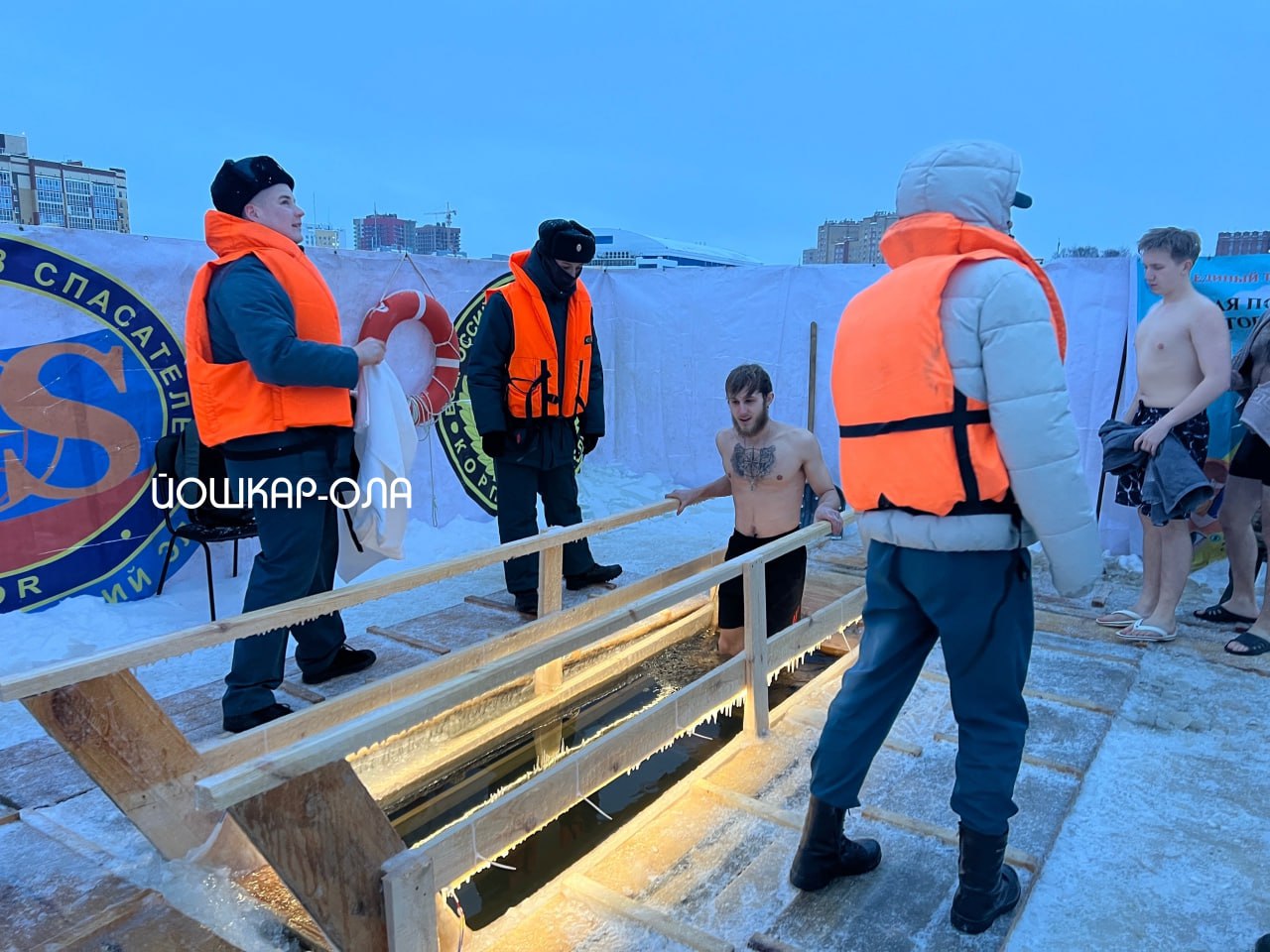 Сегодня на центральном пляже реки Малая Кокшага проходят традиционные крещенские купания. Сотни горожан – от молодёжи до пожилых – окунаются в купели или умываются святой водой.