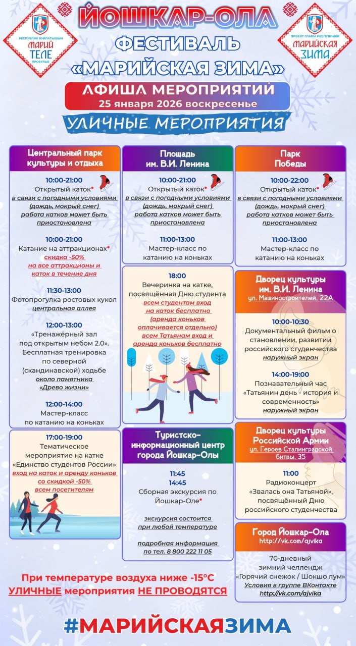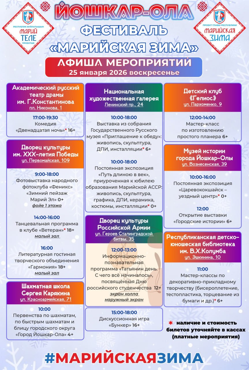 Опубликована афиша мероприятий фестиваля «Марийская зима» в Йошкар-Оле на 24-25 января
