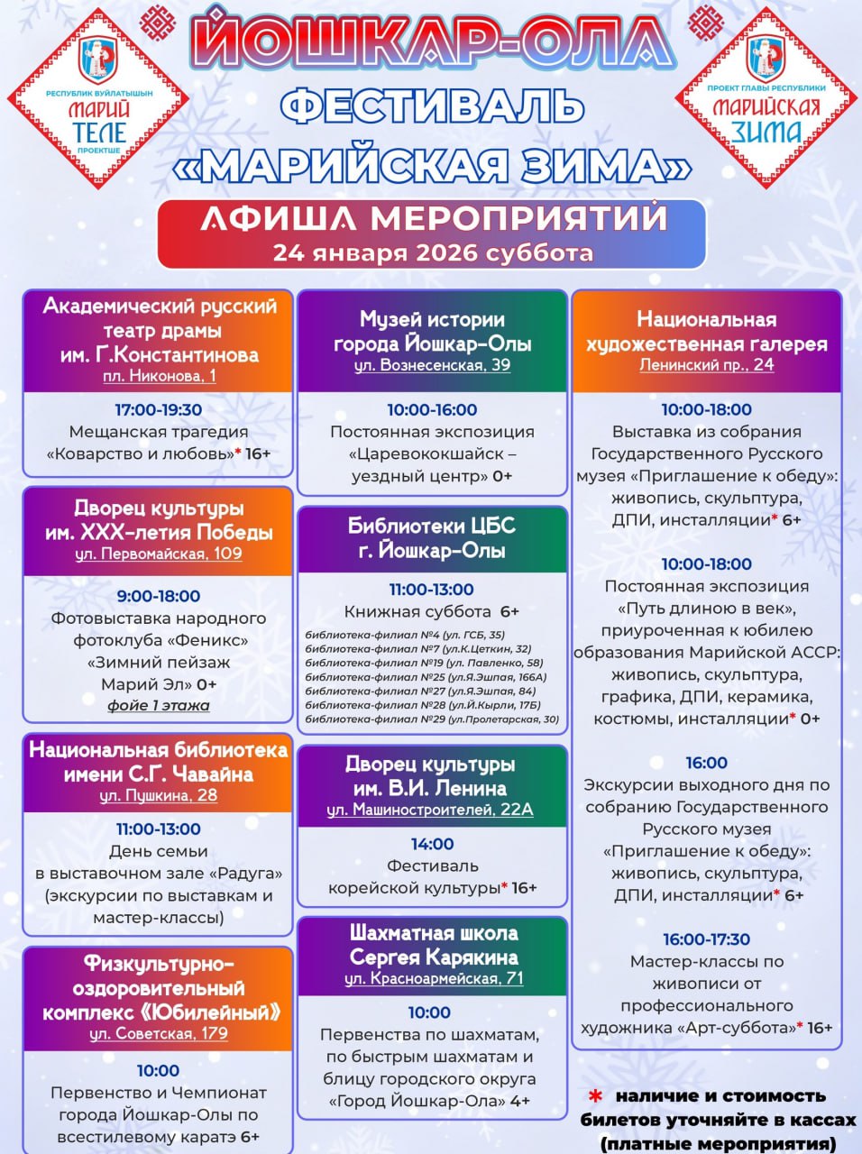 Администрация города анонсировала мероприятия, запланированные на выходные, 24 и 25 января.