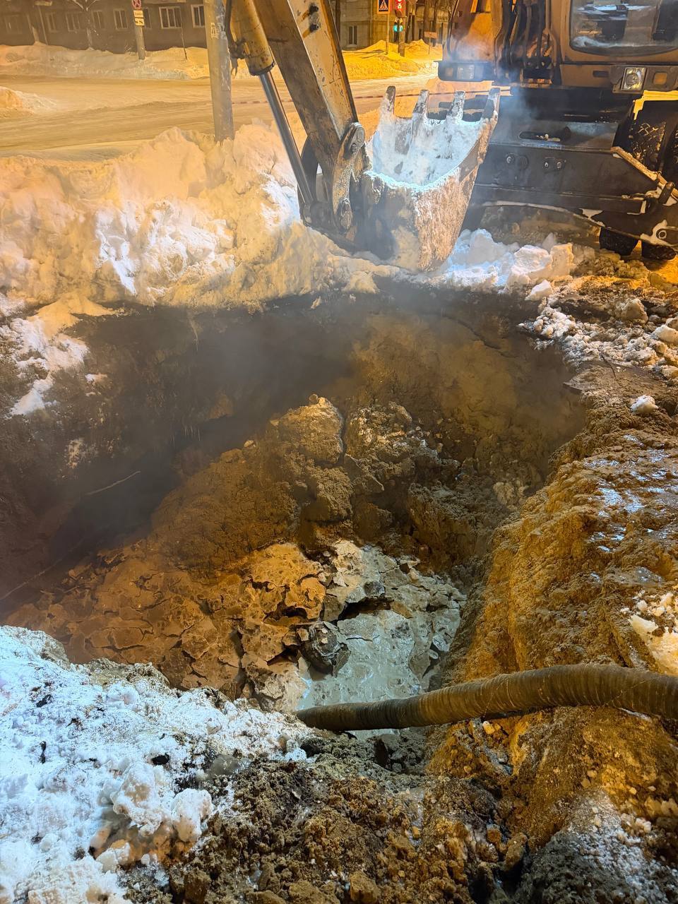Несмотря на сильный мороз, бригады делают всё возможное, чтобы как можно скорее возобновить водоснабжение для жителей близлежащих домов. Для них организован подвоз воды.