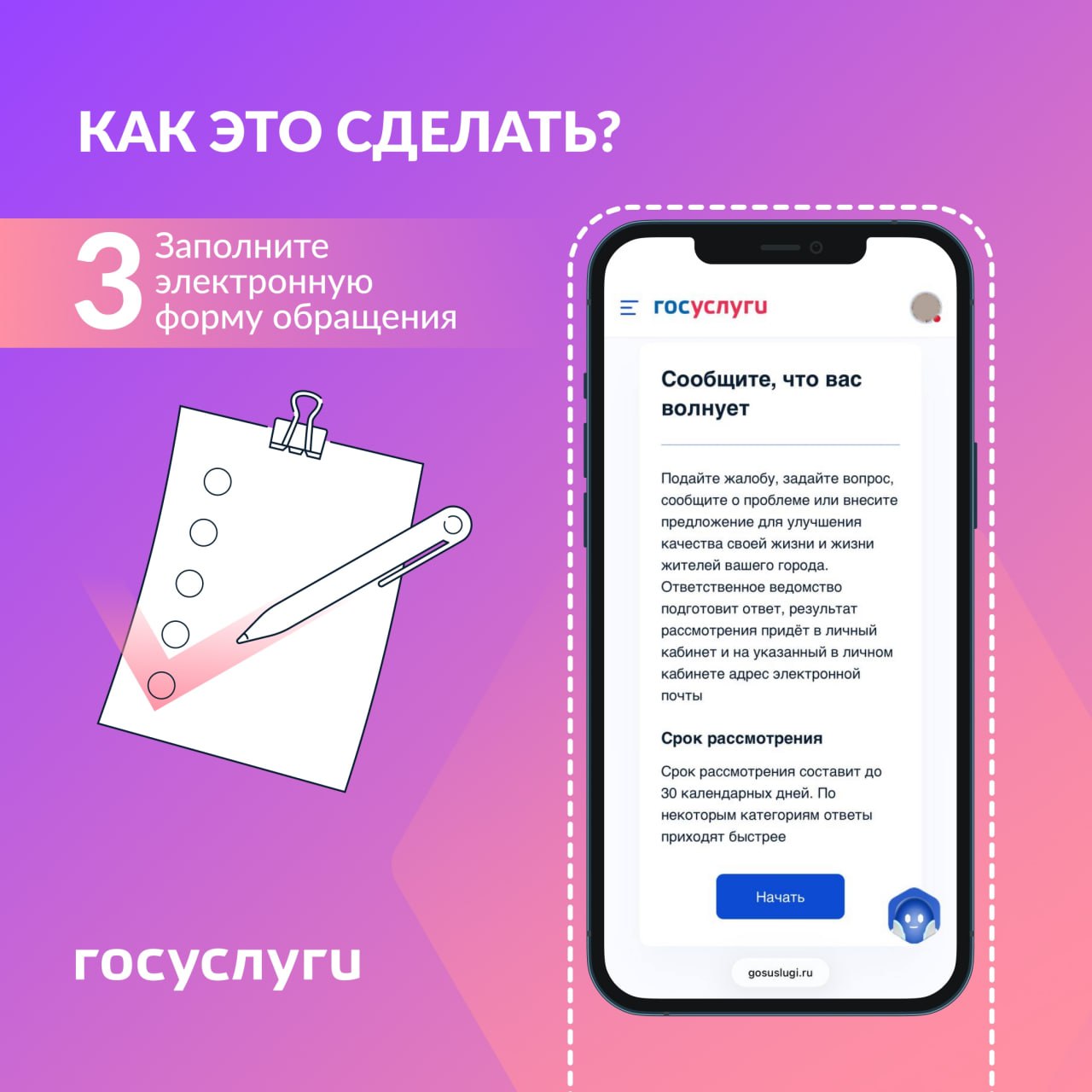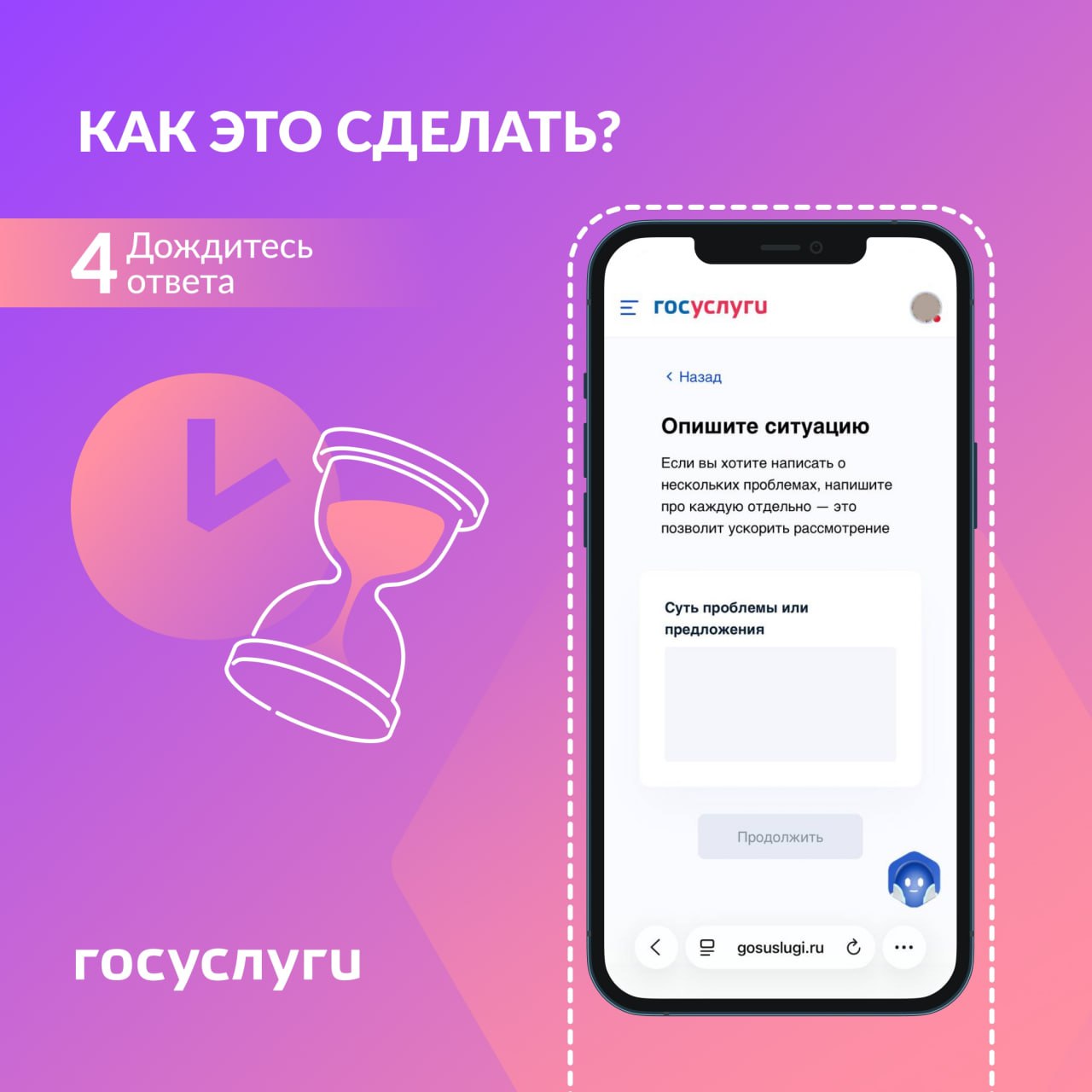 • в мобильном приложении «Госуслуги. Решаем вместе»;