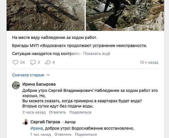 Водоснабжение после крупной аварии на водопроводе в Звенигове восстановлено. Об этом в комментариях местному жителю ответил глава администрации Звениговского района Сергей Петров.