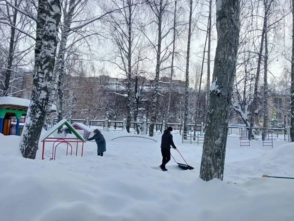 К акции также присоединились образовательные учреждения: сотрудники, родители и ученики активно помогают в уборке снега.