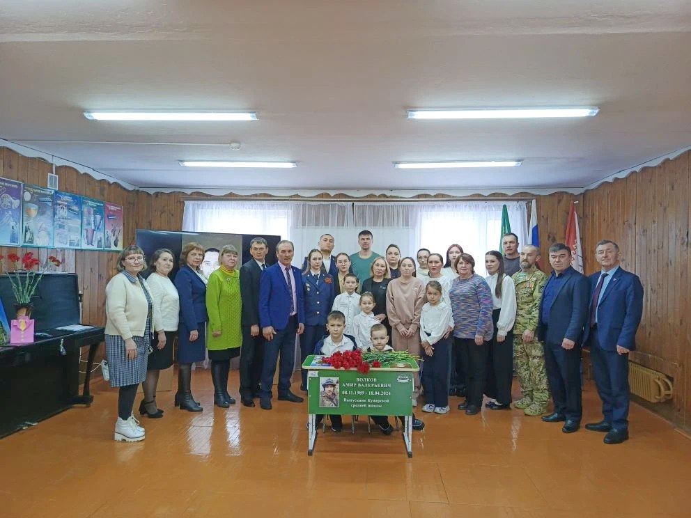 В Кужерской основной школе Моркинского района Марий Эл прошла торжественная церемония открытия «Парты Героя» в честь младшего сержанта Амира Волкова, погибшего при исполнении воинского долга.