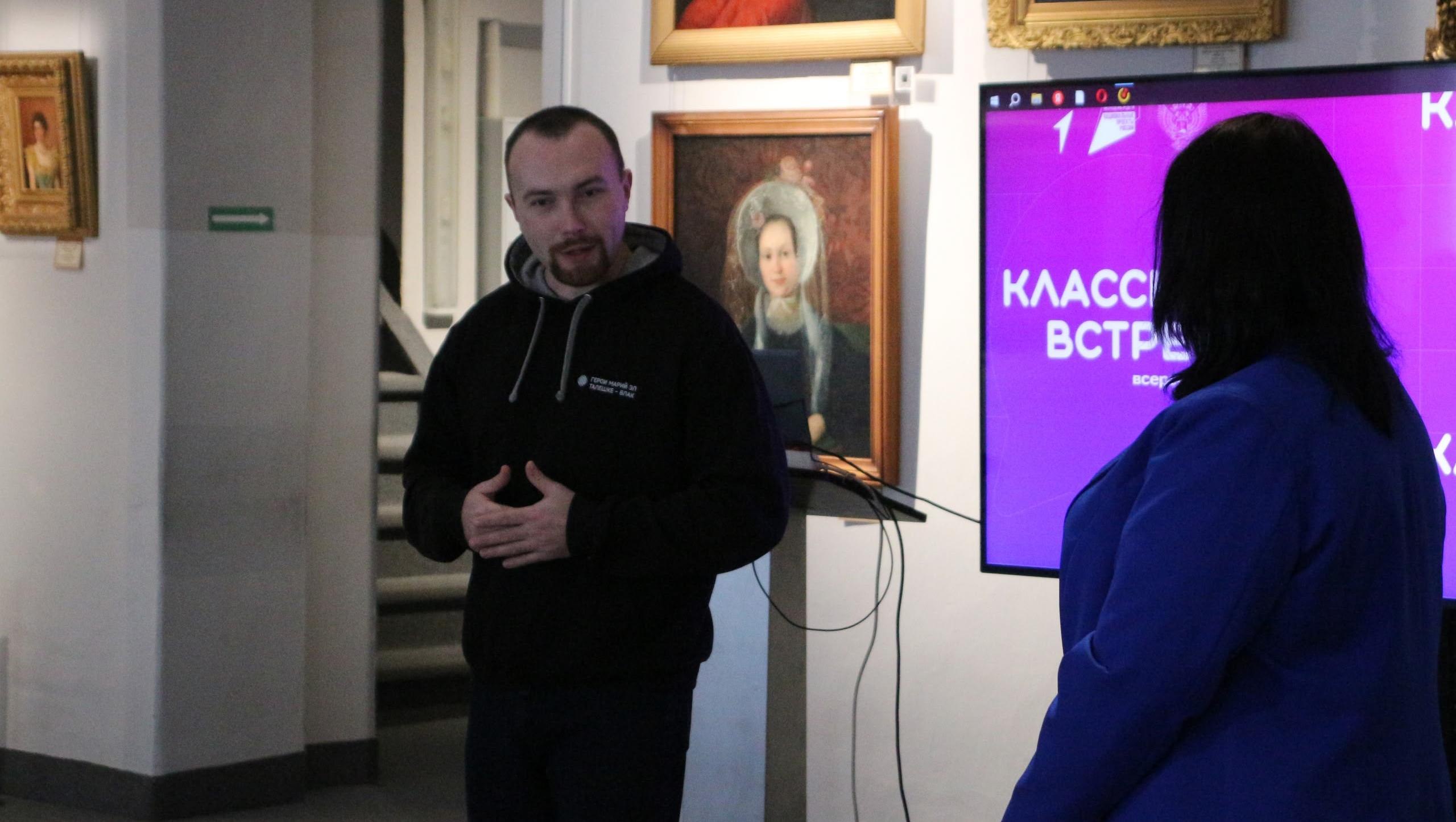В Художественно-историческом музее им. А. В. Григорьева в Козьмодемьянске прошла «Классная встреча». Гостем патриотического мероприятия стал участник кадровой программы «Герои Марий Эл. Талешке-влак» Владислав Шеин.