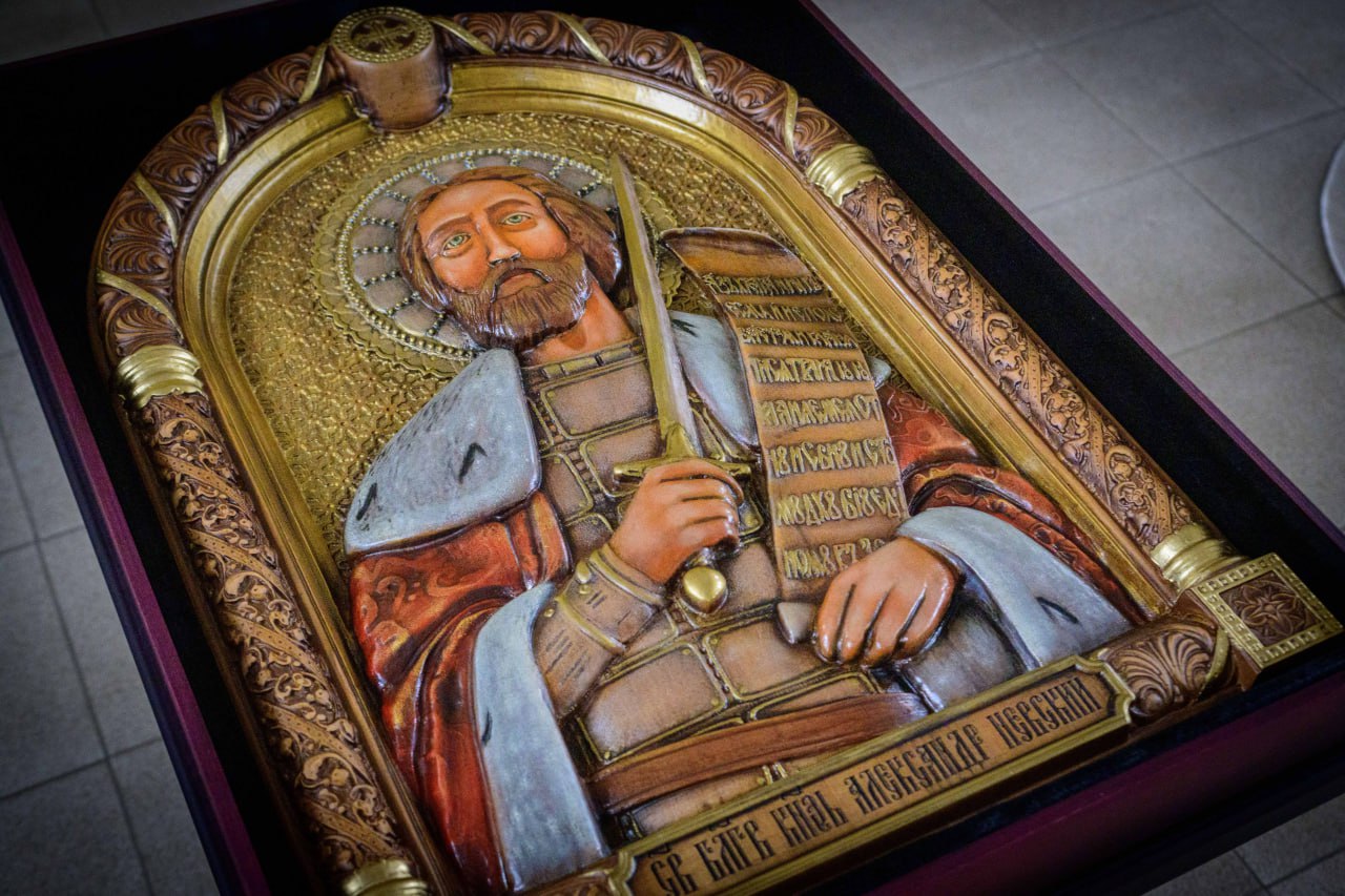 Во время встречи с настоятелем Андреем Романовым Юрий Зайцев передал в дар храму икону.