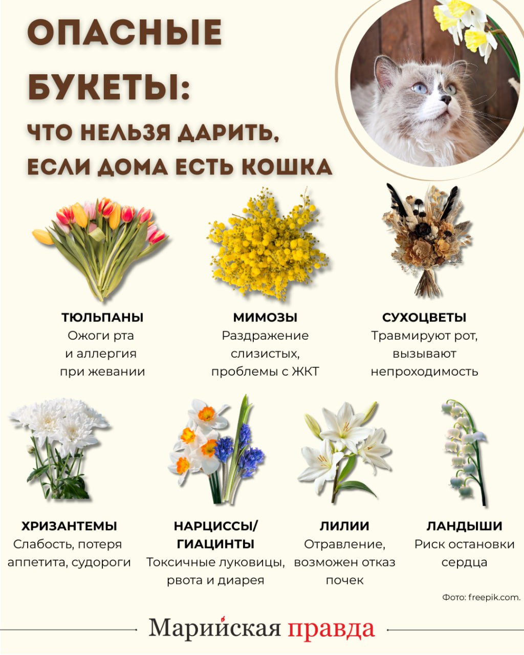 Букет на 8 марта может быть опасен для кошек