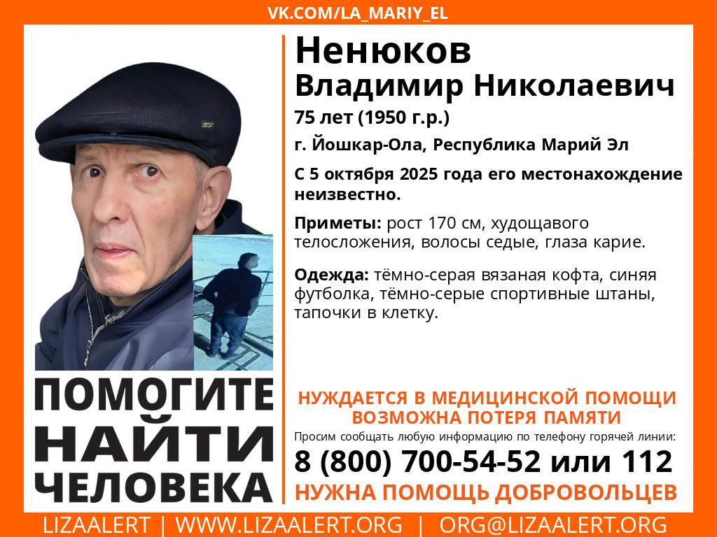 Пропал #Ненюков Владимир Николаевич, 75 лет, г. Йошкар-Ола, Республика Марий Эл