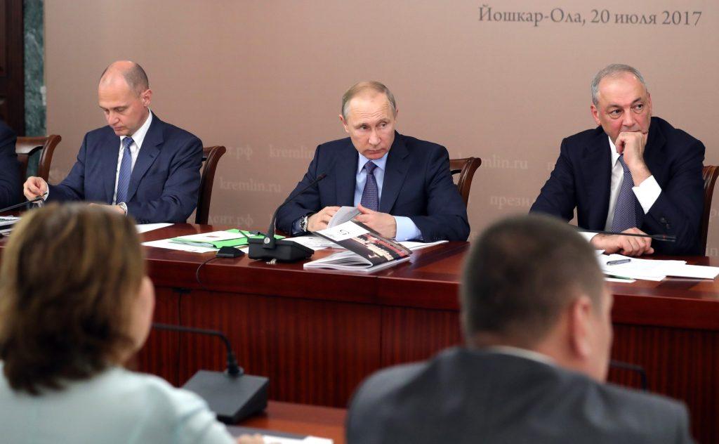 Первый визит главы государства в регион состоялся 25 апреля 2016 года. В тот день в Йошкар-Оле проходил межрегиональный форум Общероссийского народного фронта «Форум действий. Регионы», а Владимир Путин участвовал в его пленарном заседании.