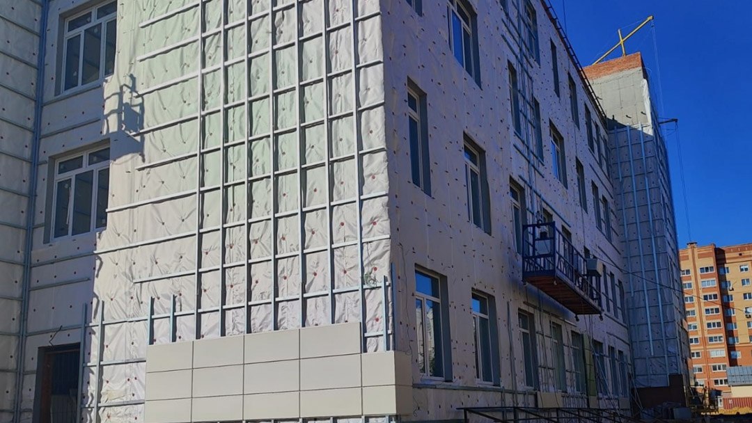 Сейчас на объекте идут внутренние и наружные работы: монтаж перегородок, инженерных систем, облицовка фасада и благоустройство территории.