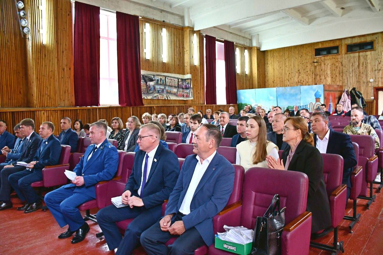 Ключевым событием визита стало участие в первой организационной сессии Собрания депутатов Волжского муниципального округа первого созыва в поселке Приволжский.