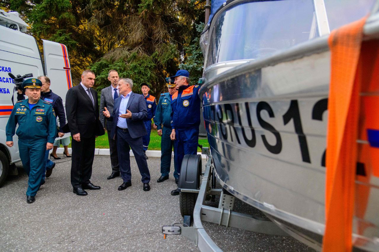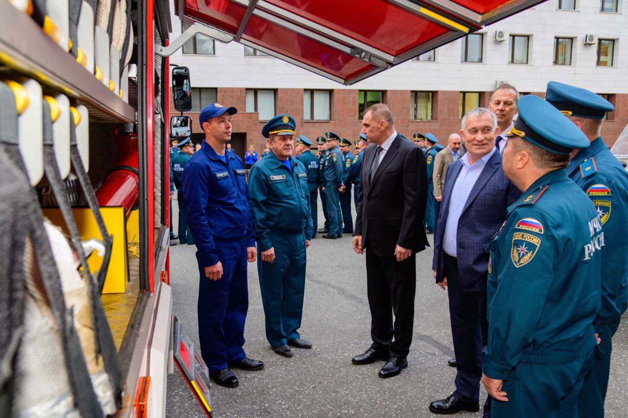 Противопожарной и аварийно-спасательной службам республики были вручены ключи от пожарной автоцистерны на базе автомобиля ГАЗ, спасательных автомобилей «Соболь» и «Некст», а также алюминиевого катера для спасательных работ и патрулирования водных акваторий.