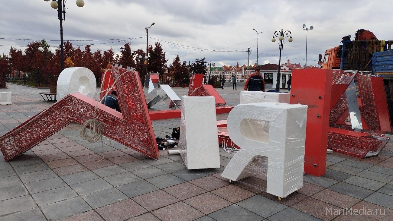 В Йошкар-Оле на набережной демонтируют майскую праздничную атрибутику