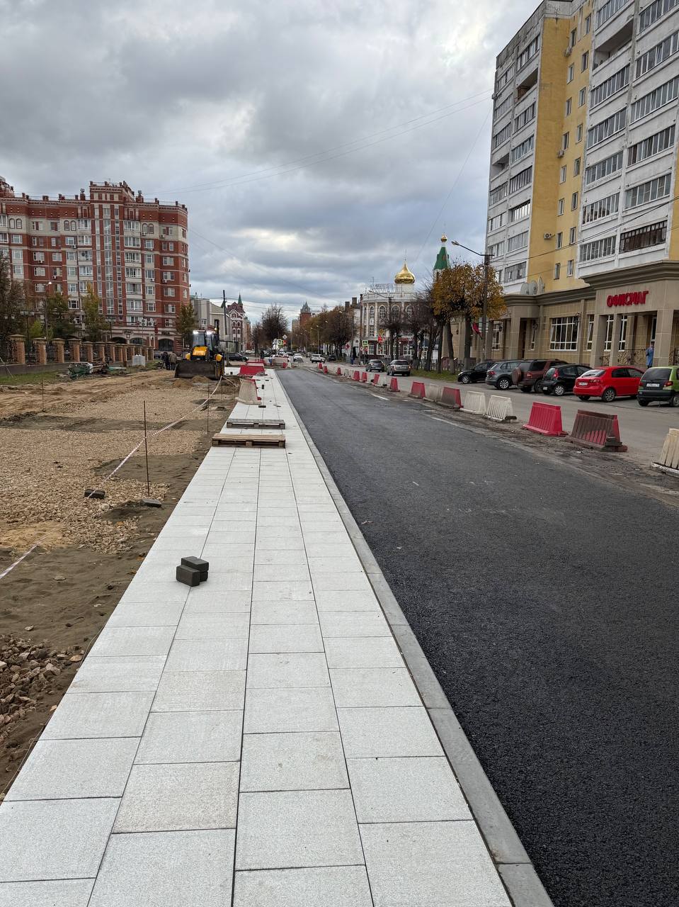 На проезжей части по бульвару уже уложили новое асфальтобетонное покрытие и нанесли дорожную разметку. Сейчас усилия подрядной организации сосредоточены на обновлении пешеходной территории вдоль ул. Вознесенской.
