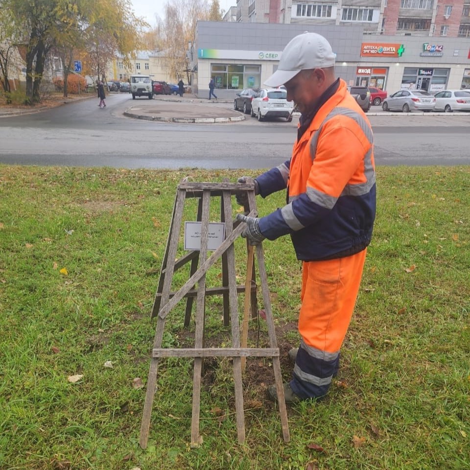 Но это еще не все! Осень — время подготовки к зиме, и наши работники не теряют ни минуты. Они устанавливают защитные экраны для саженцев деревьев, которые были посажены в этом сезоне, чтобы сохранить их в холодные месяцы.